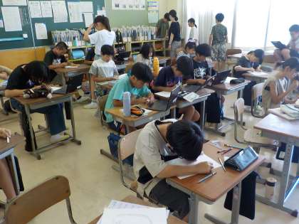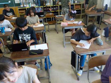 思い出のものの絵を鉛筆でえがいています。影や奥行きを意識しながら取り組んでいました。