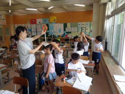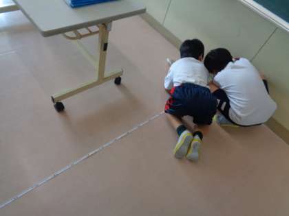 今日はまきじゃくを使って、いろいろなものの長さをはかりました。見当をつけてからはかりました。正確にはかれるようにグループで協力しながら活動できました。