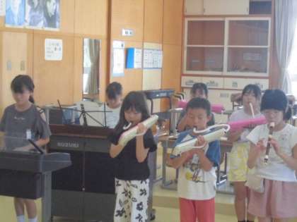 校長先生や教頭先生、栄養士さんの前で、合奏を行いました。