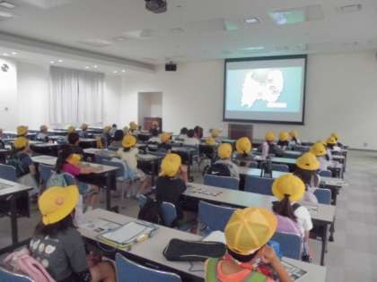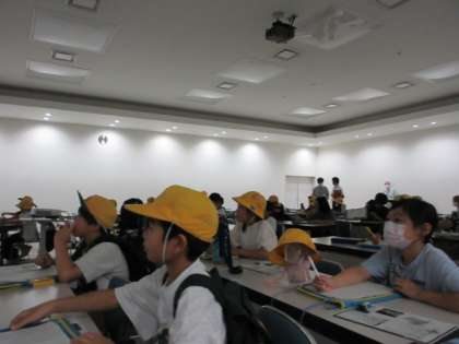 校外学習の最初は、クリーンセンターの仕組みや工夫について紹介するビデオを見ました。
