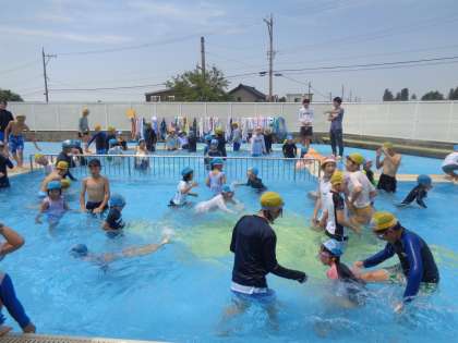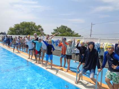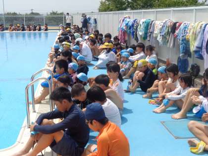 今日はプール開きでした。みんな待ちに待っていました。6年生は1年生の見守りでまず小プールに入り、その後大プールに入りました。1年生にプールの入り方を一緒に教えてあげました。