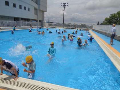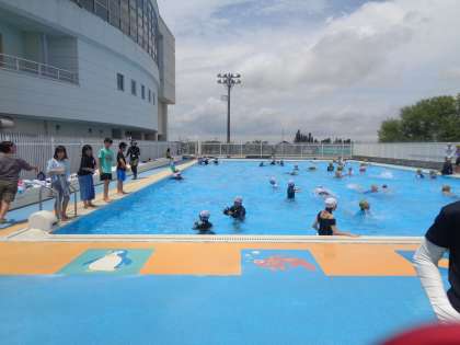 今日は天気が心配されましたが、10時ごろからは晴れ間も見え蒸し暑い日になりました。そんな日はプールに入るのが一番です。プール開き後初めての入水だったので、今日は記録をとりました。