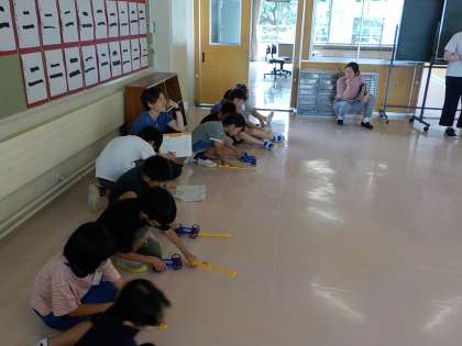 3年生は、「ゴムがものを動かす力がある」ことを学びます。ゴムを伸ばす長さを変えたり、ゴムの太さを変えたりするなどの実験計画を立てました。