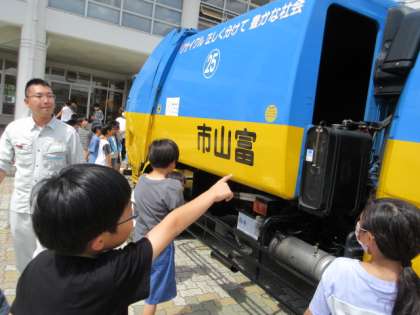 4年生は3Rスクールでごみの分別や3Rについて詳しく学びました。また実際のゴミ収集車を見て、気になることをたくさん質問しました。