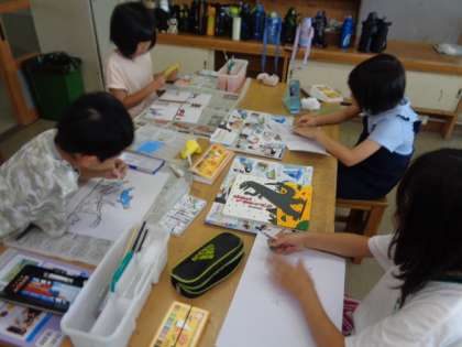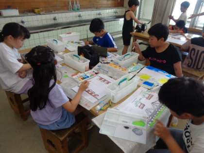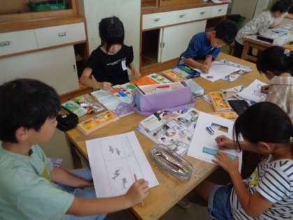 図工では、紙を折り曲げたり、立たせたりしながらどんな絵の世界をつくろうか考えながら活動しました。人によって立ち上がらせ方や絵を描く位置、イメージ等が違って個性豊かな作品が仕上がりそうです。