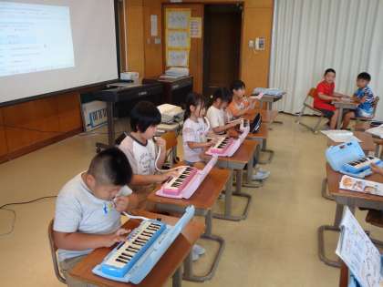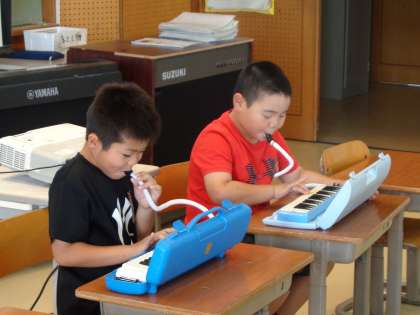 鍵盤ハーモニカで練習してきた「かえるのがっしょう」をグループで発表しました。