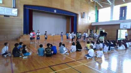 音楽の時間に練習した合奏を発表しました。「ジブリコンサートを行うので、みなさん来てください。」と全校に呼びかけをしたので、たくさんの学年の子供たちが聞きに来てくれました。