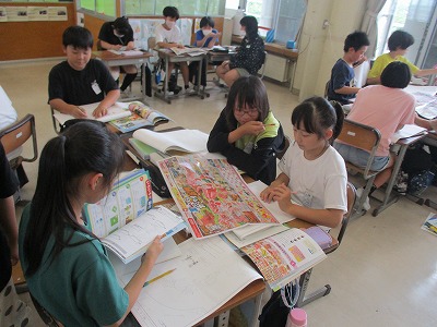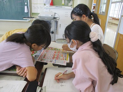 グループの仲間とチラシを見ながら、生産地についてまとめました。