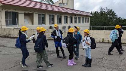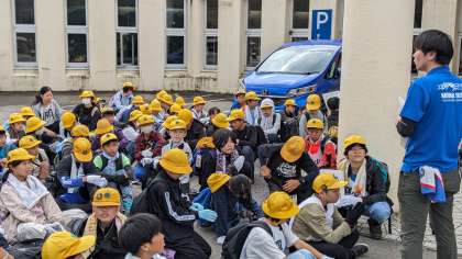 地図を頼りに巣箱の形をしたポイントを探します。グループごとに相談して出発しました。