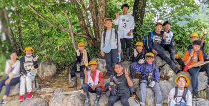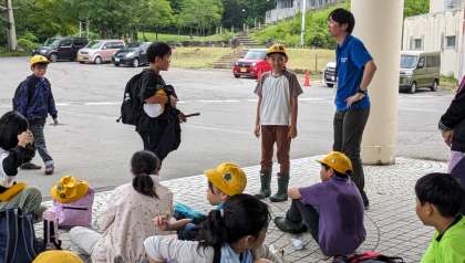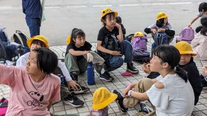 ポイントをたくさん見つけた子供たちは本部近くで休憩をしています。