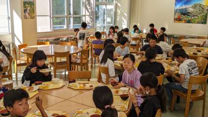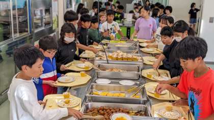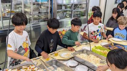食べる量を自分で考えて盛り付けしています。います