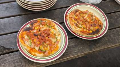 美味しそうにピザが焼き上がってきました。
