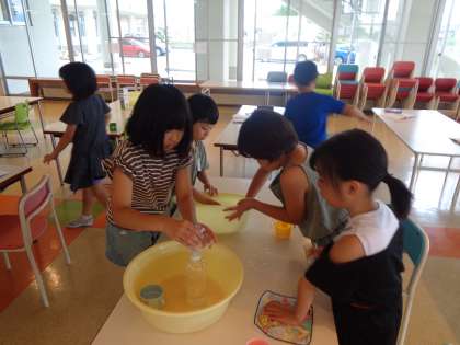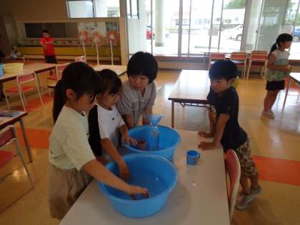 水のかさを量る単位として、「dL」という単位があると学習した子供たち。
