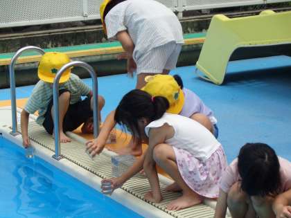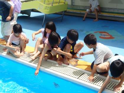 今日はプールに行って、「1L=10dL」になることを確かめました。
