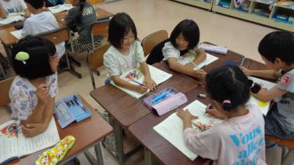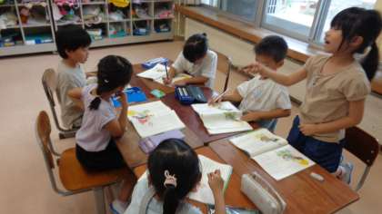 今日は「おおきなかぶ」の文章を、誰がどこの部分を読むのか話し合いました。役が決まっているので、そのことも考えながらみんなで決めているようでした。