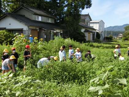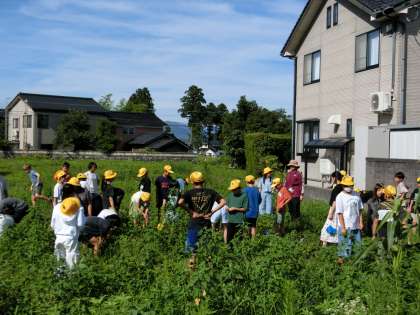 朝活動の時間に、5・6年生で協力して、さつまいも畑の草むしりを行いました。汗だくになりながら、背丈ほどある雑草もしっかりと抜いてくれました。