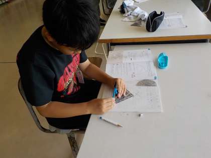 5年生は、合同な三角形のかき方を辺の長さや角度の大きさに着目しながら考えました。多様な選択肢の中から、自分がチャレンジしたい課題を選んで取り組みました。