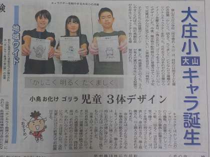 今朝の北日本新聞に、大庄小学校の教育活動の様子が掲載されました。大庄っ子の目指す子供(かしこい子、明るい子、たくましい子)をイメージしたマスコットキャラクターが決まったという内容の記事です。ご一読くだされば幸いです。