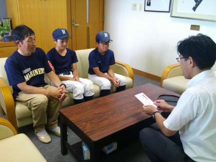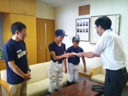 全国大会出場にあたり、本日、育成会から激励金をお渡ししました。