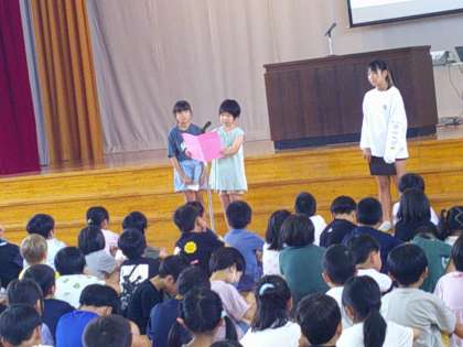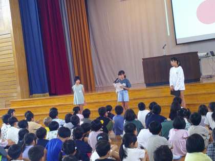 終業式後、児童代表3名の子供たちが1学期がんばったことについて発表しました。