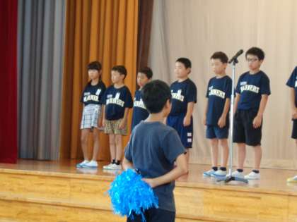 2年生 1学期終業式、がんばったこと発表、壮行会