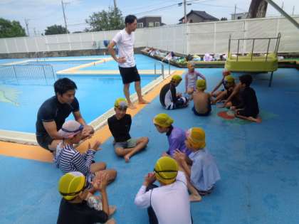 今日ははじめに個人でめあてを決めて伝え合い、めあてを意識して取り組みました。息継ぎの仕方を練習して、泳げる距離が伸びた人がいました。最後には、自分がたてためあてを振り返り、次につなげようとすることができました。