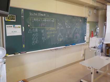 内角の和が180度になることを利用して、三角形のそれぞれの角の角度を求めました。