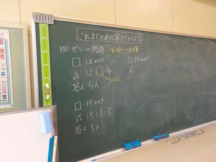 3年生は、あまりのあるわり算を学習しました。わりきれるわり算と比べながら考えました。
