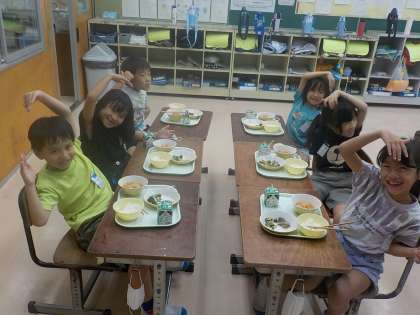 きのうから2学期の給食が始まりました。子供たちはおいしそうに食事をしていました。