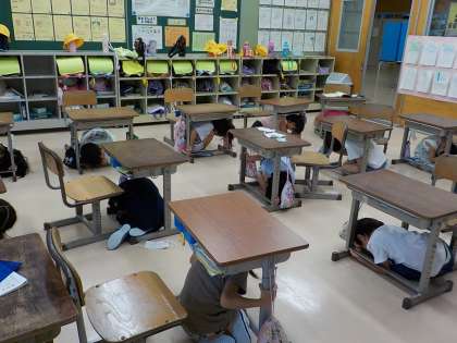 2学期最初の避難訓練がありました。今回の訓練は、地震とその後の避難を想定して行いました。地震が起きた時の安全行動を素早く取ったり、その後の避難放送をよく聞いて行動したりと、真剣に落ち着いて取り組んだ子供たちです。自分の身は自分で守れるように、今後も真剣に取り組んでいきたいですね。