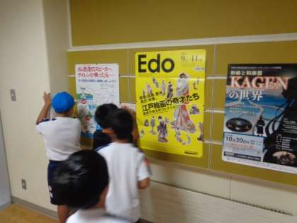 国語では、ポスターのくふうをみつける学習に取り組みました。普段何気なく目にしているポスターですが、いろいろな情報が書かれていて、読み手に伝わるように文字の大きさや使う写真などがくふうされていることに気付きました。校内にもいろいろなポスターがあり、それぞれのちがいを感じ取っていました。