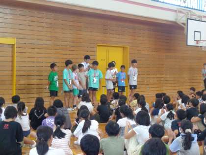 昨日、夏休み中にスポーツで頑張った子ども達の授賞伝達が行われました。サッカーでは、二つの大会で優勝したそうです。その他にも、野球やフェンシング、バレーボールなど様々なスポーツに取り組んで、自分の力を伸ばした子ども達、素晴らしいです。