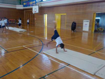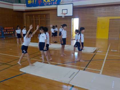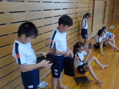 5年生はマット運動に取り組みました。自分の目当てに応じて活動場所を選んで練習を行いました。クロムブックで動画を撮影して、自分の動きを確認していました。