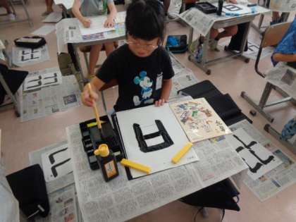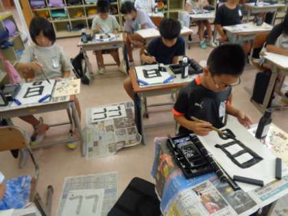 今日は2学期最初の書写でした。用意の仕方や筆のもち方、書き方などを合い言葉を使って確認しました。落ち着いて取り組むことができましたね。