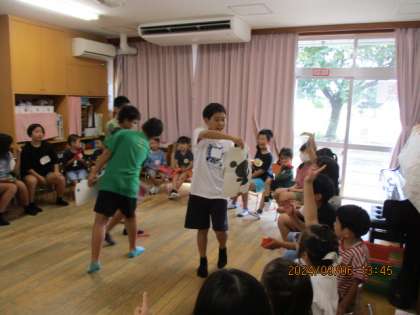 前半の活動では、フルーツバスケットとシルエットクイズをしました。