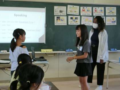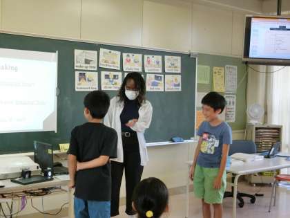 今日は、外国語活動がありました。1日のうちのどの時間が好きかを英語でやりとりしました。「bath time」や「dinner time」等、好きな生活時間を英語で表現することができました。