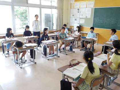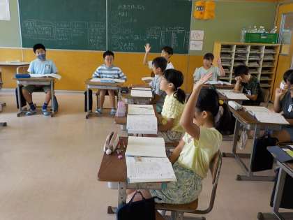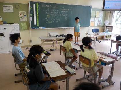 4年生は算数科で、あまりのあるわり算で筆算の仕方を考えました。