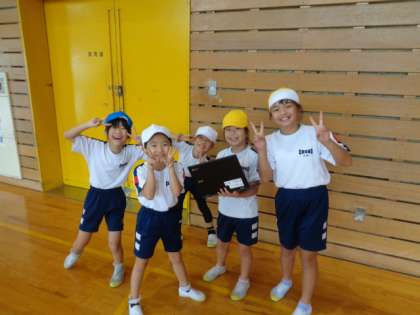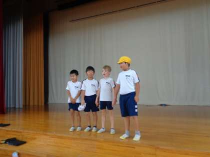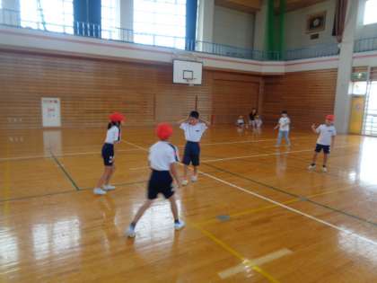 体育では表現運動に取り組みました。忍者をテーマに音楽に合わせて様々な動きを行いました。今日は、チームごとの発表会を行いました。それぞれのチームの工夫に気付きながら楽しんで身体を動かすことができました。
