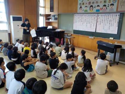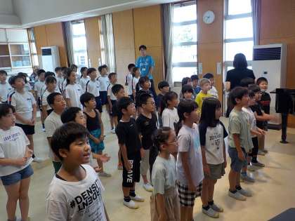 3,4年生は、区域連合音楽会に向けて合唱練習を行いました。いい表情で歌っている子供たちの様子が見られました。