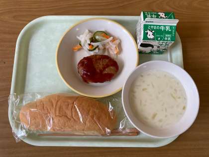 今日はじゃがいもとたまねぎが入ったクリームスープでした。じゃがいもを細くきることで口当たりがよくなるように工夫しました。