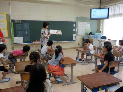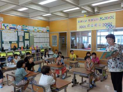 2学期最初のお話の会でした。いつも楽しみにしている子供たち。今日も集中してお話の世界に入っていました。