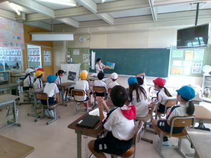 今日は、2学期になって初めての「お話の会」でした。手話で挨拶をした後、「つきよのキャベツくん」を読んでいただきました。