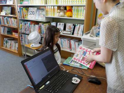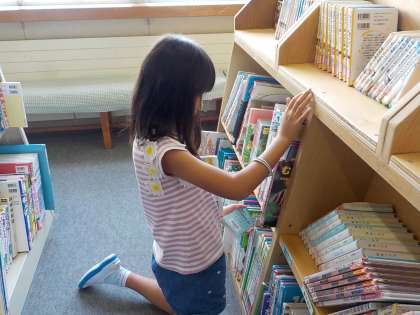 週に一度、本を借りに行っています。お話の本や、図鑑、係活動で使えそうな本など、いろいろなジャンルの本を手に取っています。