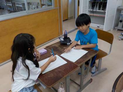 係活動の様子です。ゲーム係やクイズ係は、月末の集会に向けて準備を進めていました。そのほかの係は、クラスを盛り上げるために、ぬりえを作ったり飾りを作ったりしていました。