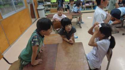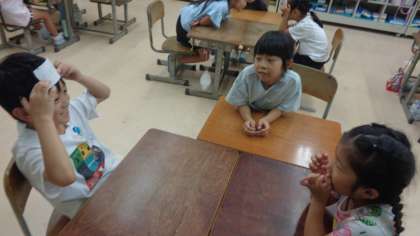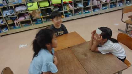 今日は集会をして、「わたしはなんでしょうゲーム」や、的当てをして楽しみました。「わたしはなんでしょうゲーム」では、グループの友達と楽しく盛り上がっている様子が見られました。