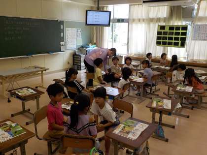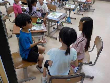 1年生は「生き物となかよくなろう」という目当てで、生き物を飼育する計画を立てました。