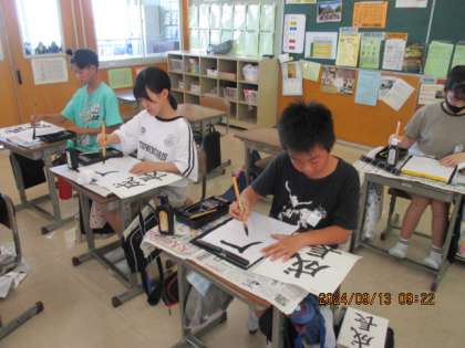 習字の時間の様子です。背筋を伸ばして集中して取り組んでいます。