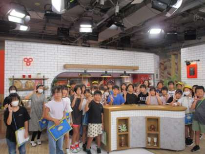 スタジオの中に入らせていただました。テレビでしか見たことのない世界で、興味津々で見学しています。