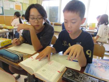 国語科では、「いろいろな意味をもつ言葉」を学習しました。辞書を使って言葉の意味を調べながら、一生懸命学習に取り組んでいました。