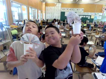 「難しい」と言いながらも、自分だけの紙コップ花火を仕上げようとがんばっていました。